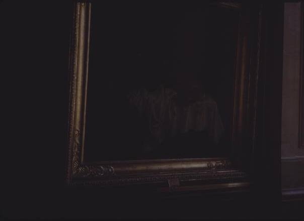 picture that is in a darker room that is of a painting