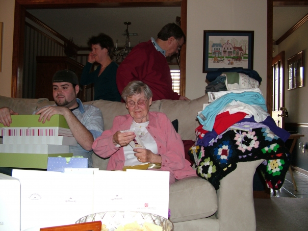Grandma received a brand new gift from her young grandchildren who gathered with her in the crowded living room.