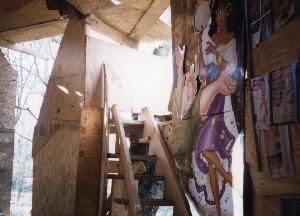 The stairs led up to a sun filled place which was outdoors with no roof. |