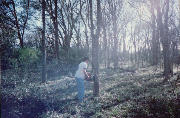 Man drilling the tree. |