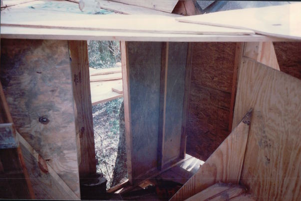 A small wooden air that has potential to be worked on, the picture is inside the piece. |