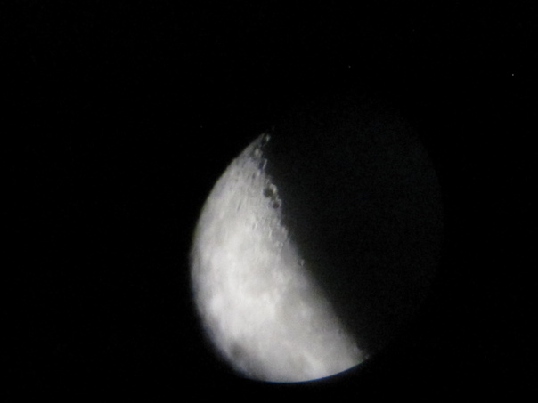 The telescope that Tisa bought me for Christmas in 2002 has been at my parents house in Corpus Christi for several years. This one particular night I noticed that there was a beautiful view of the moon through it and worked to take a picture of what I could see through the telescope's diopter.