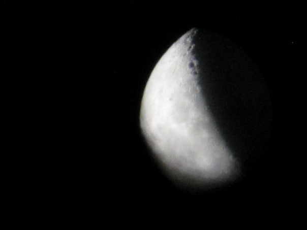 The telescope that Tisa bought me for Christmas in 2002 has been at my parents house in Corpus Christi for several years. This one particular night I noticed that there was a beautiful view of the moon through it and worked to take a picture of what I could see through the telescope's diopter.