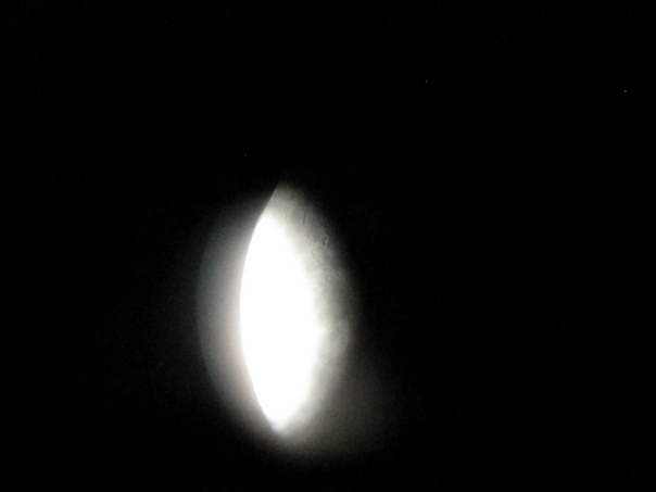 The telescope that Tisa bought me for Christmas in 2002 has been at my parents house in Corpus Christi for several years. This one particular night I noticed that there was a beautiful view of the moon through it and worked to take a picture of what I could see through the telescope's diopter.
