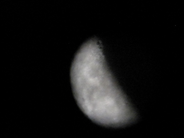 The telescope that Tisa bought me for Christmas in 2002 has been at my parents house in Corpus Christi for several years. This one particular night I noticed that there was a beautiful view of the moon through it and worked to take a picture of what I could see through the telescope's diopter.