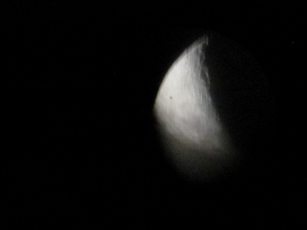The telescope that Tisa bought me for Christmas in 2002 has been at my parents house in Corpus Christi for several years. This one particular night I noticed that there was a beautiful view of the moon through it and worked to take a picture of what I could see through the telescope's diopter.