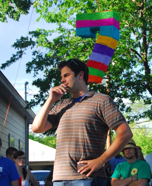 man at party with pinata
