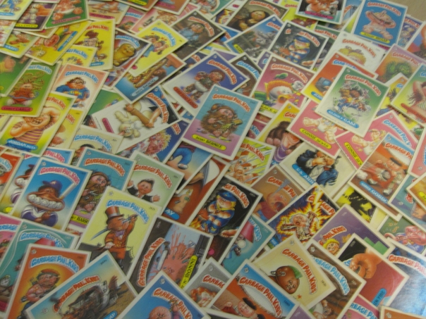 Bunch of rectangle cards on the table with bright colors on them.
