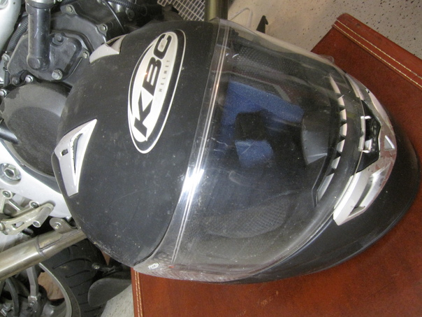 There is a helmet displayed on the table. A bike is nearer to the helmet.