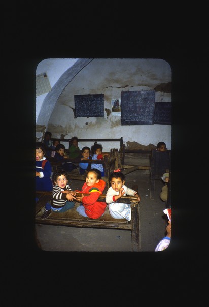 The young and bright children are waiting for their school lesson to start in what is called their elementary school classroom. |