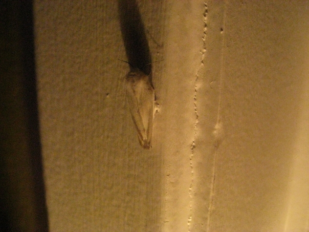I went to pick at it when I realized that it was in fact a very small moth. I don't know why I decided that I would shoot some pictures of it, but I did. Not only that, but after experimenting with some lighting and the digital macro options, I was able to get some details of this little critter that I never thought would be possible with a standard point and shoot digital camera.