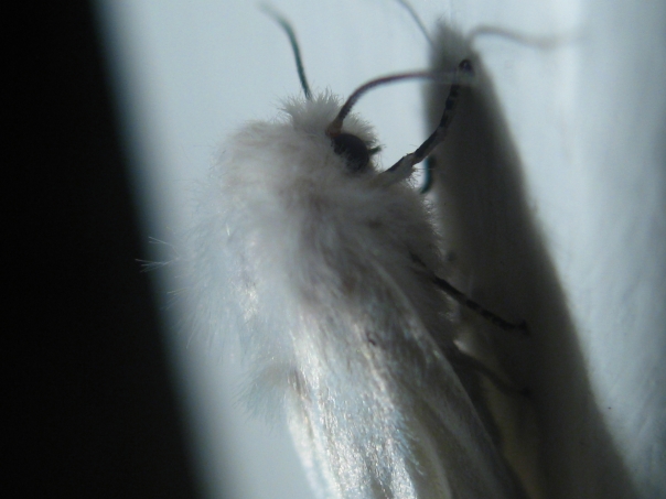 I went to pick at it when I realized that it was in fact a very small moth. I don't know why I decided that I would shoot some pictures of it, but I did. Not only that, but after experimenting with some lighting and the digital macro options, I was able to get some details of this little critter that I never thought would be possible with a standard point and shoot digital camera.