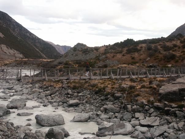 ![]() Mt. Cook Mt. Cook, New Zealand Mt. Cook was definitely one of the more enjoyable and scenic parts of Tisa and I's voyage. To anyone who is not familiar with it, Mt. Cook (or Aoraki in Maori) is the tallest peak in New Zealand with an summit of 3,754 meters or 12,316 feet. The water in the river was frigid and the shaky suspension bridge that towered over it was something out of an Indiana Jones movie. To say the very least, I loved the experience. |