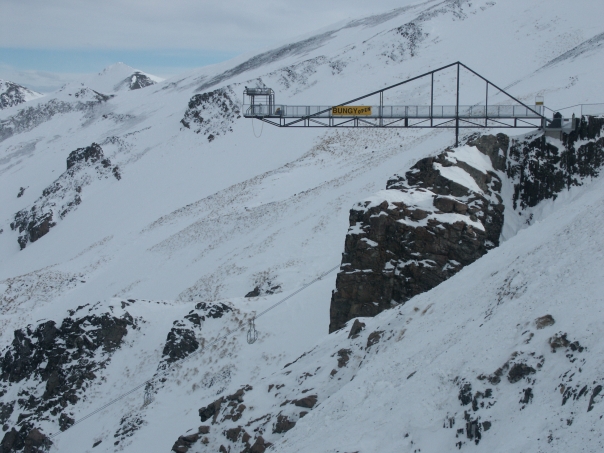 A note on these lifts: they have a device, which we use in US ski areas no doubt, that two people can grab at a time and a rip cord pulls out about 25 feet and tows you up the mountain. This is perfectly fine to use at the basin as a more lateral lift, but this was the method to get to the summit! It was exhausting to be pulled up diamond and double-diamond runs especially on a snowboard where you are turned sideways.
