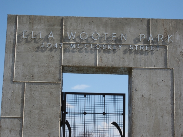 A photo taken on a clear sunny day shows an entrance to the Ella Wooten Park.