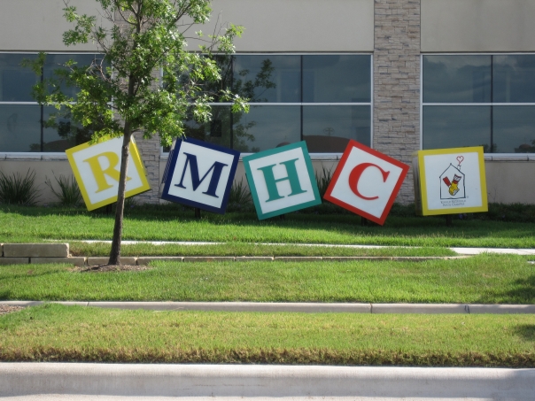 A multicolored business sign for Ronald Mcdonalds' housing charity.