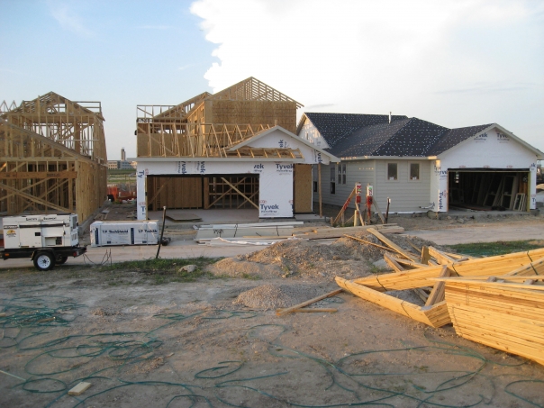 This is the construction site of a brand new residential neighborhood, and it appears as if all of these newly erected homes will take on the same single-family, cookie-cutters, two story design.