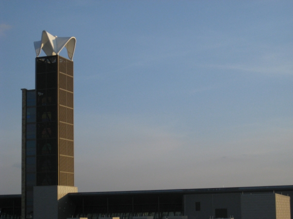 High above in the tower of testing elevators of the future, engineers discuss the technology of one second 45 floor trips.