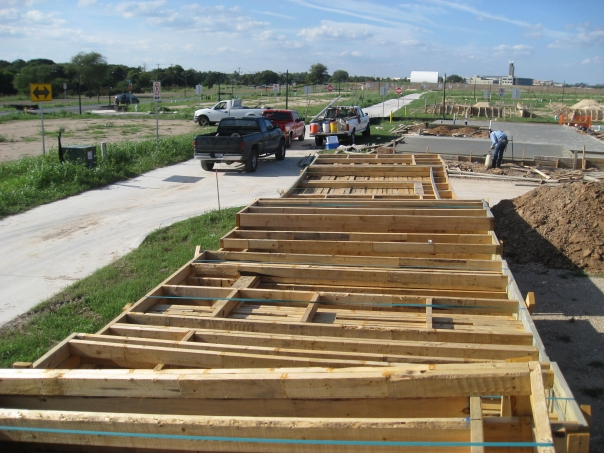 construction site wood timber walls trucks housing site building pouring cement