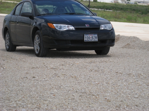 dark color sedan in gravel parking lot