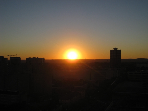Beautiful sunrise breaking forth over a somewhat urban setting to herald the new day.