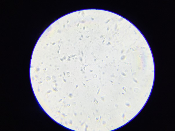 a shot from a microscope with many little semi translucent particles in it