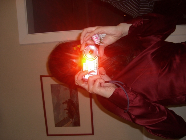 After using the party noise blower, the person is snapping some awesome pictures of today's excitement.