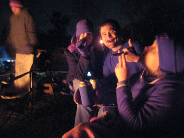 It's just as dark and quiet out there as any of the real camping places we'd go to, only it's much closer to town. A number of people came and went throughout the night, but a small group of us actually camped out on the property.