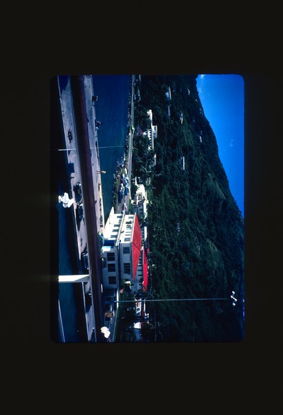 View of a house near hill attached to lake painted with red color looks very beautiful. |