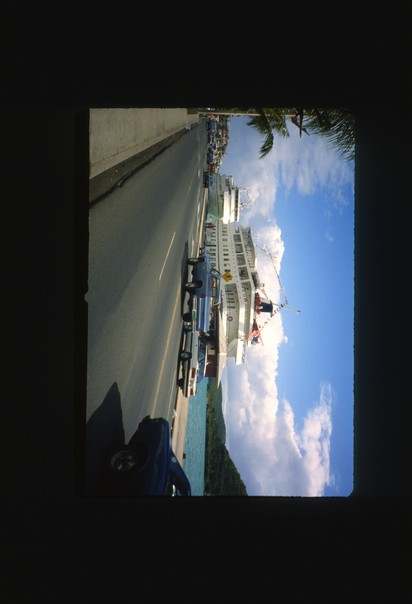 2 cruise ships is there in dock and some cars moving to word to that root. |