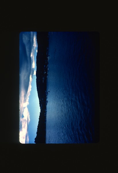 This is a beautiful scene of an ocean and bright skyline with a few clouds. |