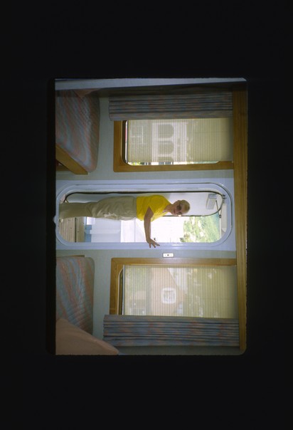 a lady is standing in the entrance. the lady have yellow color shirt. |
