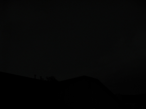 The outline of a rooftop is completely black against a slightly less black night sky.