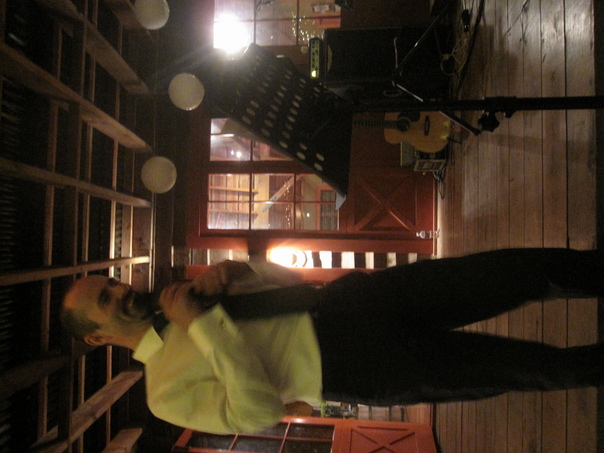 There is a man wearing a tie and smiling standing next to a music stand. |
