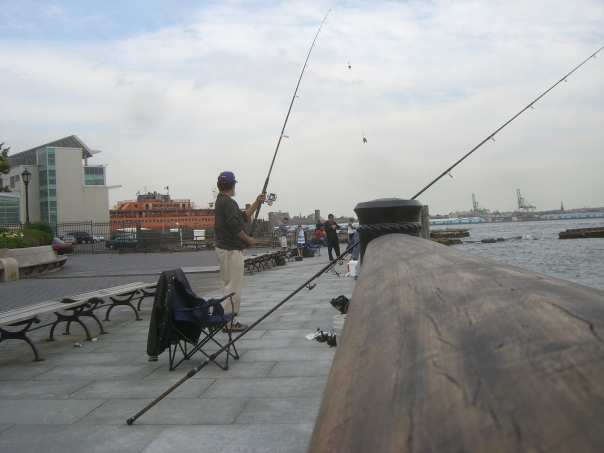 Man fishing notices that others are having better luck than him