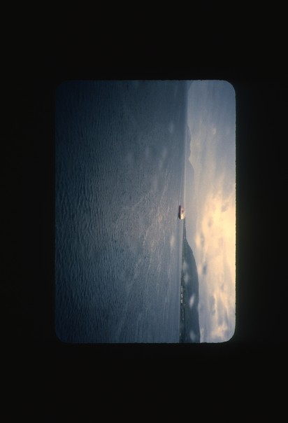 A sea view with a portion of clear sky with clouds, the sea being silent. |