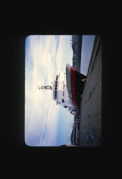 the sky is blue and the lake view is seen and look fantastic and ship is going |