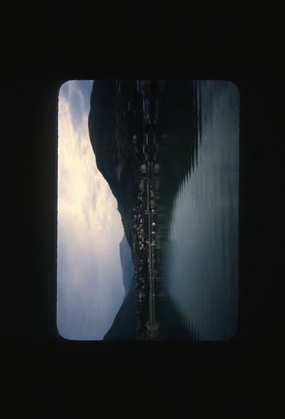water, waves, ripples, blue, dark, dusk, gloomy, mountain, homes, clouds, white, |