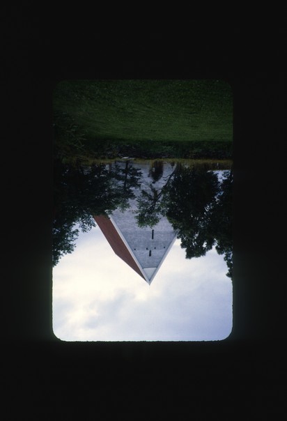 the image is dark and the house is seen reverse