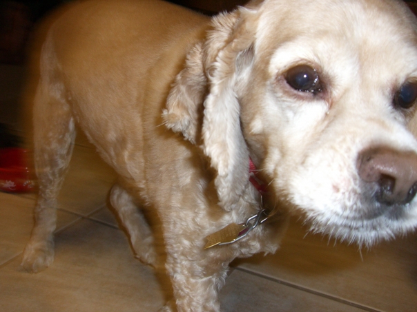 A couple of pictures of Gene and Vanessa's dog, Odie, over at the Crockett's house.