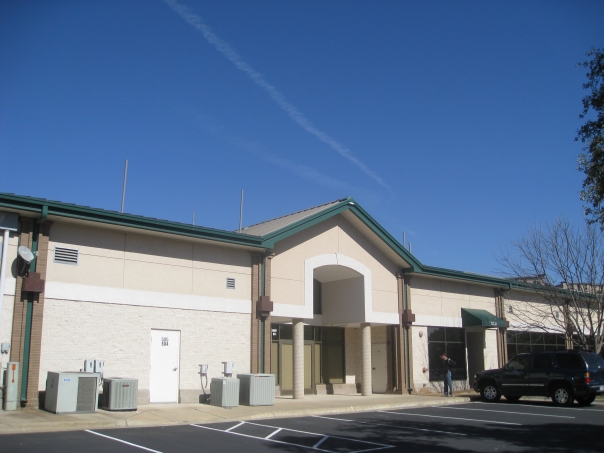 A one story tan building strip mall