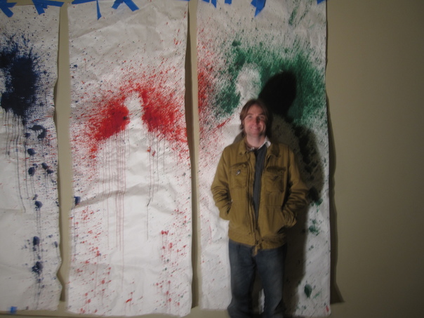 AN ARTIST IS STANDING WITH SMILE AND HE IS READY FOR PAINTING