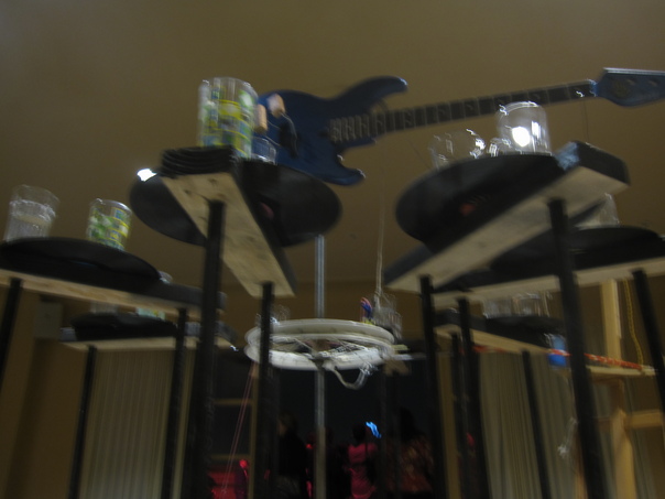 After releasing their highly anticipated video for "This Too Shall Pass" in the form of a one-shot Rube Goldberg machine, Ok Go had a party showcasing all of the different components to the machine.