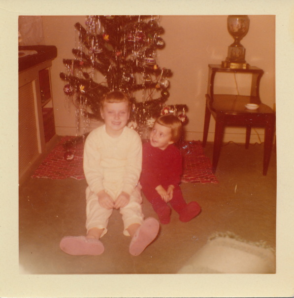 Two brothers are sitting on the floor as they get their picture taken