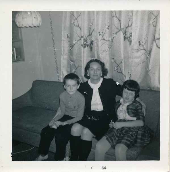 a picture of a young boy and girl with their mother or grandmother.