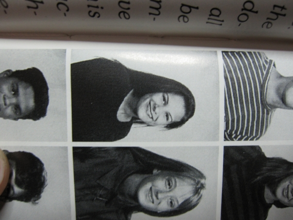 The year book photos show many people smiling for their school. |