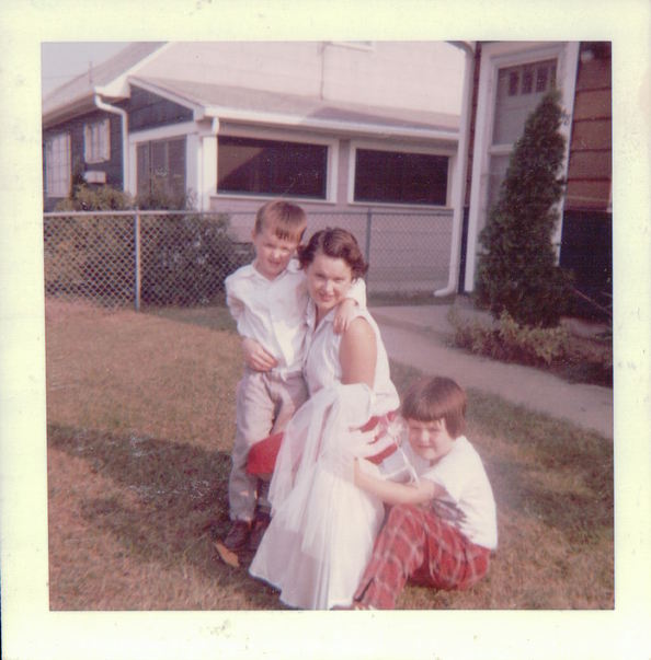 Mother with her two children are sitting in outside of the house with smiling face and seeing outside.