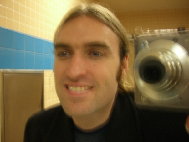 A GUY LOOKING IN THE LENS OF A CAMERA