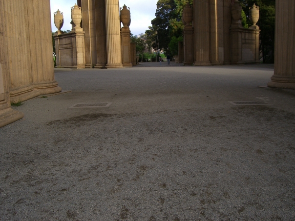 As you enter the open area, you can observe the stately Romanesque pillars and urns yellowing with age.