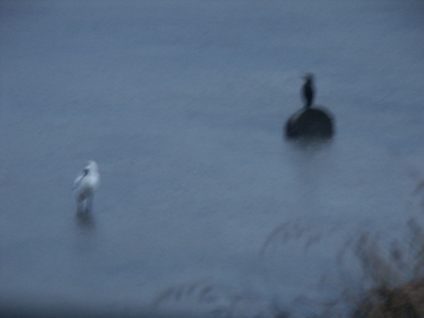 The scene is gray and muted as the two creatures look off in different directions.